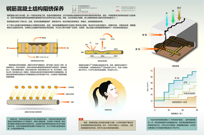 钢筋混凝土耐久性问题,是一个复杂的系统工程,受诸多因素的影响,由于结构物必须能够经受环境作用和时间的考验,因此,环境因素成为影响结构耐久性的焦点,而其中的腐蚀因素特别是钢筋的腐蚀破坏成为世界关注的大问题,因此,如何采取技术措施,防止钢筋锈蚀成为国内外研究的重点之一。
