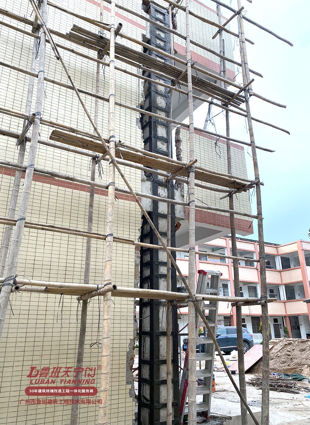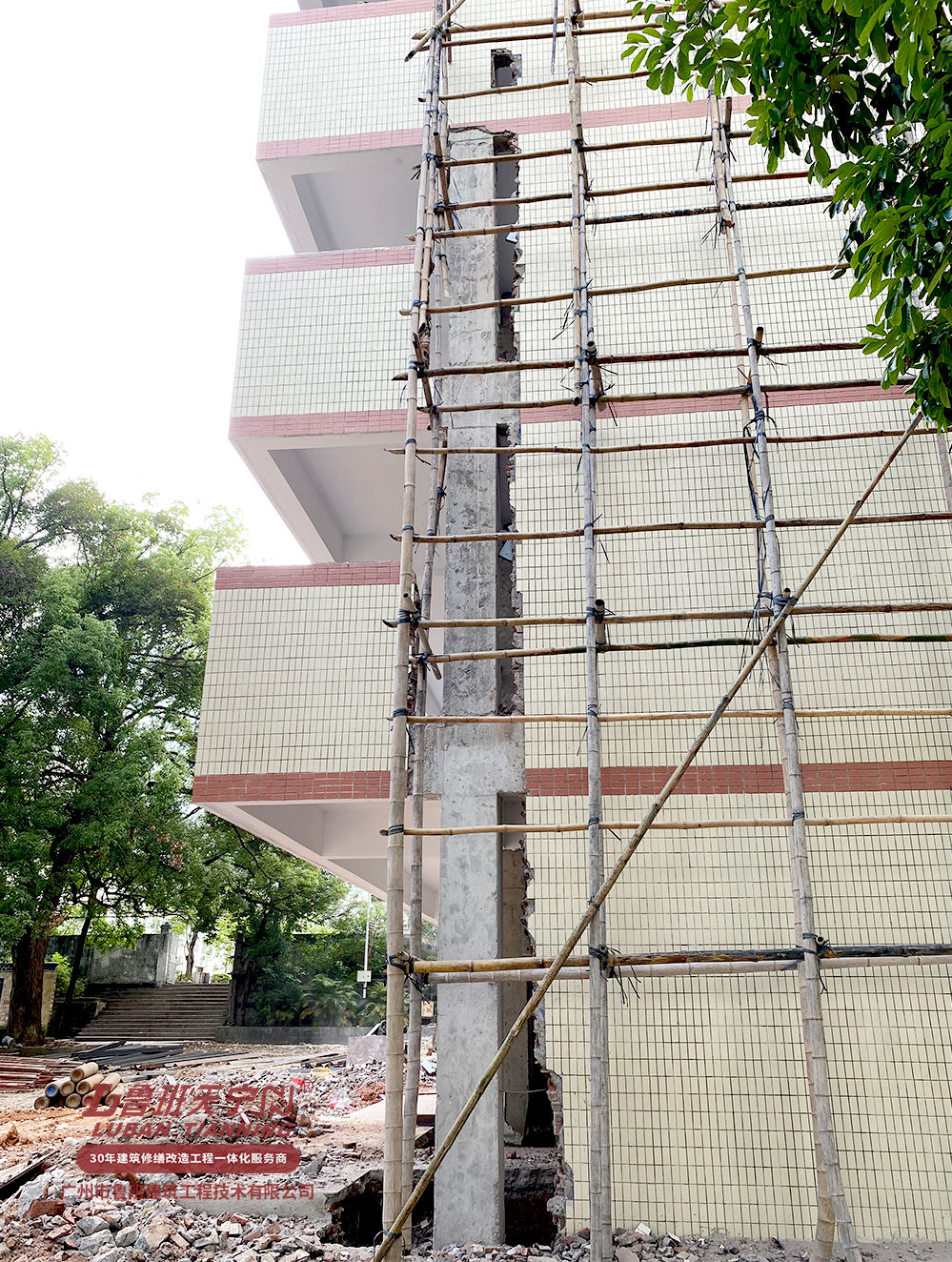 浏览量:966 发布时间:2023.09.06新近,由广州市鲁班建筑工程技术有限公司承建的某校宿舍楼加固工程顺利完工。该栋建筑为5层楼,鲁班公司对该宿舍楼的50余条梁和柱分别采取了梁粘贴碳纤维布加固和柱外包钢加固,以提高构件的承载能力和整体受力性能。